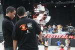 Os alumnos cun técnico preparando os focos para unha gravación